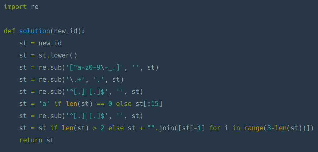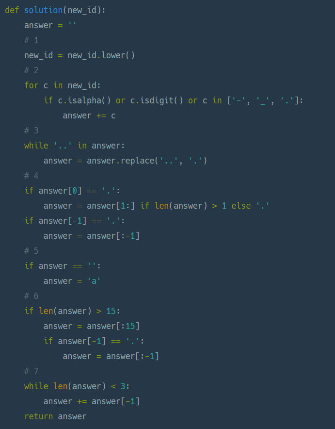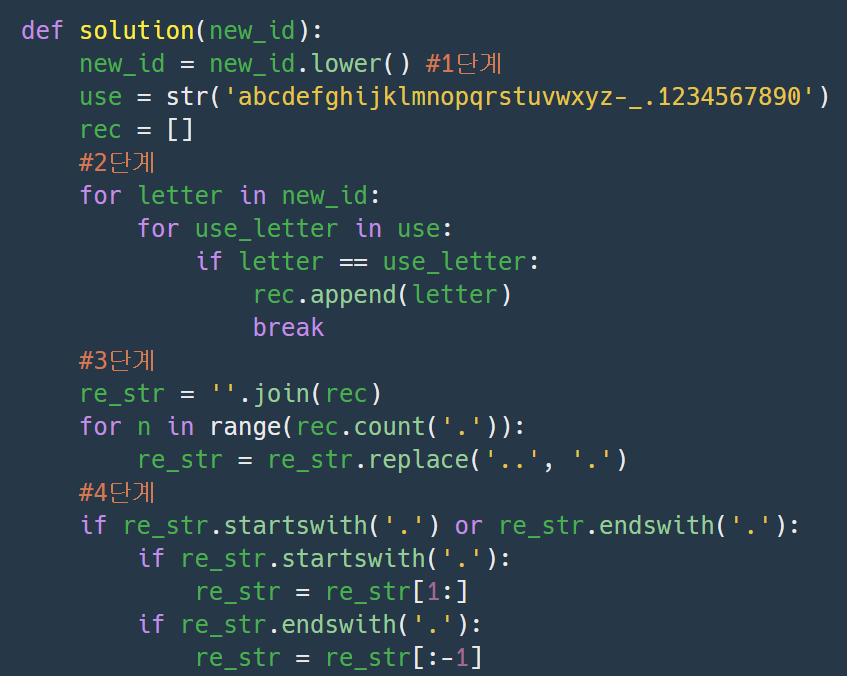 나는 허용되는 문자만 찾아서 더해주는 방식으로 list의 append 함수를 생각하였으나,