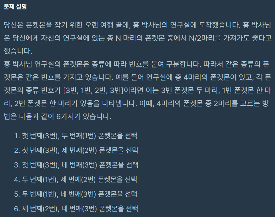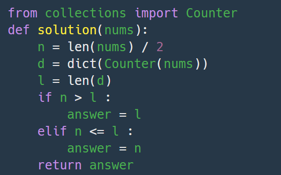 문제) 주어진 list에서 서로 다른 수를 선택할 때, 다르게 선택할 수 있는 종류의 최대